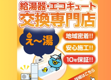 \給湯器・エコキュート専門/ 1-2月限定 チラシ情報 「給湯省エネ2026始動」&新ブランド誕生のお知らせ 写真タップでオリジナルソングが聴けます♪ \お得な情報をチェック/ .web-check-button { background-color: red; color: white; font-size: 1.5em; font-weight: bold; padding: 15px 25px; text-align: center; text-decoration: none; display: inline-block; border-radius: 5px; width: 100%; max-width: 300px; box-shadow: 0 4px 6px rgba(0, 0, 0, 0.1); } WEBチラシをCHECK! 【対応エリア:宮崎市・国富町・綾町】 毎日当たり前のように使っている「お湯」。 お風呂や家事など生活に欠かせないだけに、突然の故障、特に冬場のトラブルはまさに緊急事態です。 「すぐに対応してほしい」「費用が不安」 「どこに頼めばいいかわからない」 毎日、寄せられる皆様の切実なお悩みを解決するため、えさかでは給湯器交換に特化した専門ブランド「え〜湯(えーゆ)」を立ち上げました! 今回は、なぜ多くの宮崎市民の皆様に「え〜湯」が選ばれているのか、その3つの特徴をご紹介します。 既存の給湯器、エコキュート外観、品番写真を送信 気軽にお見積依頼する \LINEかんたん無料見積もり/ 給湯器専門「え~湯」の3つの特徴 1. 宮崎地域密着だからできる「スピード対応」 大手ネット通販のような「受付と施工業者が別で手配に時間がかかる」というタイムラグはありません。 「お湯が出ない!」というSOSに対し、地元の地理を知り尽くしたスタッフが急行します。最短での現場調査や工事対応を目指しています。 顔の見える地元スタッフの機動力で、お客様の不安を素早く解消します。 2. 安心の「コミコミ価格」表示で予算も明確 工事後の追加請求など、費用面の不安を解消するため、以下のサービス費用をすべて含んだ「工事費込み価格」を提示しています。 ・商品本体代金(10年保証:最新の省エネ機種など) ・標準工事費(取り付け・配管接続・試運転調整) ・既設給湯器の撤去 ・処分費 原則として追加料金はありません。 特殊な工事が必要な場合でも、必ず事前に総額をお見積もりし、ご納得いただいてから着工するため安心です。 3. 「えさか」の信頼と実績による確実な施工 給湯器交換はガスや水道に関わる工事のため、単なる「安さ」だけで選ぶのはリスクがあります。 私たちは有資格者が安全基準を遵守して確実に施工を行います。設置後のアフターフォローも万全。地元企業の責任として「品質・安心第一」をお届けし、長く快適な環境を整えます。 ガス給湯器もエコキュートもお任せ下さい 「え〜湯」では、お客様のライフスタイルや設置環境に合わせて最適なご提案ができるよう、国内主要メーカーの製品を幅広く取り扱っております。 ・ガス給湯器(ノーリツ、リンナイ、パロマなど) 瞬間的にお湯を沸かせるパワフルさが魅力。 ・エコキュート(三菱、ダイキン、パナソニックなど) 空気の熱を利用してお湯を沸かすため、光熱費の削減に効果的。 「今の光熱費が高いから見直したい」「子供が大きくなってお湯の量が増えたから、号数を上げたい」など、ご要望をお聞かせください。専門スタッフが最適な機種をご案内します。 最大17万円の支援も!リフォーム補助金 「給湯省エネ2026」始動のお知らせ 冬の寒さで光熱費が気になる季節、家庭エネルギーの約3割を占める「給湯」の見直しが重要です。 家計負担を劇的に減らす「給湯省エネ2026事業」が本格始動しました。 高効率給湯器への交換で、エコキュートなら最大10万円、エネファームなら最大17万円が補助されます。撤去加算を含めると最大25万円程度の支援も可能です。 今回は天気予報と連動する「昼間沸き上げシフト(DR機能)」が必須化されました。 電気を賢く使う「次世代の給湯スタイル」へアップデートする絶好の機会です。 ●古い給湯設備の撤去による追加補助 エコキュート導入と同時に、古い熱源設備を撤去する際には追加の補助金が加算されます。 ●電気温水器の撤去: +2万円/台。 注:高効率給湯器導入により補助を受ける台数まで加算されます。 ●蓄熱暖房機の撤去: +4万円/台。 注:上限2台まで加算されます。 ※ エコキュートからエコキュートへの買い替えのように、高効率給湯器を撤去する場合は加算対象となりません。 例えば、電気温水器から上位機種のエコキュート(10万円)へ交換した場合、撤去加算(2万円)と合わせて、合計12万円の補助金を受け取ることが可能です。 まずは無料お見積もりを! 給湯器の寿命は一般的に15年前後と言われています。 もし、ご自宅の給湯器で以下のようなサインが出ていたら要注意です。 お湯の温度が安定せず、熱くなったりぬるくなったりする 給湯器本体から異音がする、ボンという着火音が大きい 排気口から黒い煙が出ている リモコンにエラーコードが頻繁に表示される これらは故障の前兆です。 エコキュートなど寒くなると壊れやすく、完全に壊れてお湯が出なくなってしまう前に、補助金消化も含めて余裕を持って交換することをおすすめします。 宮崎市で給湯器の交換