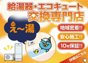 \宮崎市の給湯器・エコキュート交換/ 最短翌日の現場調査|見積無料 2026年「給湯省エネ補助金」登録事業者 \お得な情報をチェック/ .web-check-button { background-color: red; color: white; font-size: 1.5em; font-weight: bold; padding: 15px 25px; text-align: center; text-decoration: none; display: inline-block; border-radius: 5px; width: 100%; max-width: 300px; box-shadow: 0 4px 6px rgba(0, 0, 0, 0.1); } WEBチラシ 【対応エリア:宮崎市・国富町・綾町】 こんな症状、放置していませんか? ✅ お湯の温度が不安定(熱くなったりぬるくなったり) ✅給湯器から異音がする・着火音が大きい ✅ リモコンにエラーコードが頻繁に表示される ✅ 設置から10年以上経過している これらは故障の前兆です。 特にエコキュートは冬場に壊れやすく、完全停止すると復旧まで数日かかることも。 補助金の予算枠がある今のうちに、余裕を持った交換をおすすめします。 宮崎市で給湯器の交換をご検討の方は、ぜひ専門店「えさか」にご相談ください。 写真送って無料見積 【対応エリア:宮崎市・国富町・綾町】 LINE無料見積 宮崎市で「え~湯」が 選ばれる3つの理由 給湯器専門ブランドだからできること 1. 地域密着だからできる「スピード対応」 受付から施工まで自社一貫体制。 大手ネット通販のように受付と施工業者が別で、手配に時間がかかるタイムラグはありません。宮崎市内の地理を知り尽くしたスタッフが最短で現場へ急行。「お湯が出ない」というSOSに、顔の見える地元スタッフの機動力でお応えします。 2. 安心の「コミコミ価格」表示で予算も明確 工事後の追加請求など、費用面の不安を解消するため、以下のサービス費用をすべて含んだ「工事費込み価格」を提示しています。 ・商品本体代金(10年保証:最新の省エネ機種など) ・標準工事費(取り付け・配管接続・試運転調整) ・既設給湯器の撤去 ・処分費 原則として追加料金はありません。 特殊な工事が必要な場合でも、必ず事前に総額をお見積もりし、ご納得いただいてから着工するため安心です。 3. 「えさか」の信頼と実績による確実な施工 給湯器交換はガスや水道に関わる工事のため、単なる「安さ」だけで選ぶのはリスクがあります。 私たちは有資格者が安全基準を遵守して確実に施工を行います。設置後のアフターフォローも万全。地元企業の責任として「品質・安心第一」をお届けし、長く快適な環境を整えます。 ガス給湯器もエコキュートもお任せ下さい 「え〜湯」では、お客様のライフスタイルや設置環境に合わせて最適なご提案ができるよう、国内主要メーカーの製品を幅広く取り扱っております。 ・ガス給湯器(ノーリツ、リンナイ、パロマなど) 瞬間的にお湯を沸かせるパワフルさが魅力。 ・エコキュート(三菱、ダイキン、パナソニックなど) 空気の熱を利用してお湯を沸かすため、光熱費の削減に効果的。 「今の光熱費が高いから見直したい」「子供が大きくなってお湯の量が増えたから、号数を上げたい」など、ご要望をお聞かせください。専門スタッフが最適な機種をご案内します。 写真送って無料見積り 【対応エリア:宮崎市・国富町・綾町】 LINE無料見積り 最大17万円の支援も!リフォーム補助金 「給湯省エネ2026」始動のお知らせ 光熱費が気になる季節、家庭エネルギーの約3割を占める「給湯」の見直しが重要です。 家計負担を劇的に減らす「給湯省エネ2026事業」が本格始動しました。 高効率給湯器への交換で、エコキュートなら最大10万円、エネファームなら最大17万円が補助されます。撤去加算を含めると最大25万円程度の支援も可能です。 今回は天気予報と連動する「昼間沸き上げシフト(DR機能)」が必須化されました。 電気を賢く使う「次世代の給湯スタイル」へアップデートする絶好の機会です。 ●古い給湯設備の撤去による追加補助 エコキュート導入と同時に、古い熱源設備を撤去する際には追加の補助金が加算されます。 ●電気温水器の撤去: +2万円/台。 注:高効率給湯器導入により補助を受ける台数まで加算されます。 ●蓄熱暖房機の撤去: +4万円/台。 注:上限2台まで加算されます。 ※ エコキュートからエコキュートへの買い替えのように、高効率給湯器を撤去する場合は加算対象となりません。 例えば、電気温水器から上位機種のエコキュート(10万円)へ交換した場合、撤去加算(2万円)と合わせて、合計12万円の補助金を受け取ることが可能です。 .web-check-button { background-color: red; color: white; font-size: 1.5em; font-weight: bold; padding: 15px 25px; text-align: center; text-decoration: none; display: inline-block; border-radius: 5px; width: 100%; max-width: 300px; box-shadow: 0 4px 6px rgba(0, 0, 0, 0.1); } WEBチラシ 【対応エリア:宮崎市・国富町・綾町】 見積りはカンタン3ステップ STEP 1: 給湯器の写真を撮る(型番ラベルが見える角度で) STEP 2: LINEまたはWEBフォームで写真を送信 STEP 3: 最短当日、概算見積りをお返しします ※現地調査が必要な場合も、日程調整のうえ無料で伺います。 /* 全体のデザイン(共通) */ .banner { text-align: center; font-family: Arial