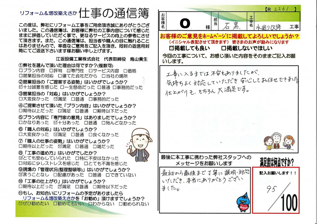 最初の問い合わせから工事当日まで、終始とても丁寧に対応していただき、