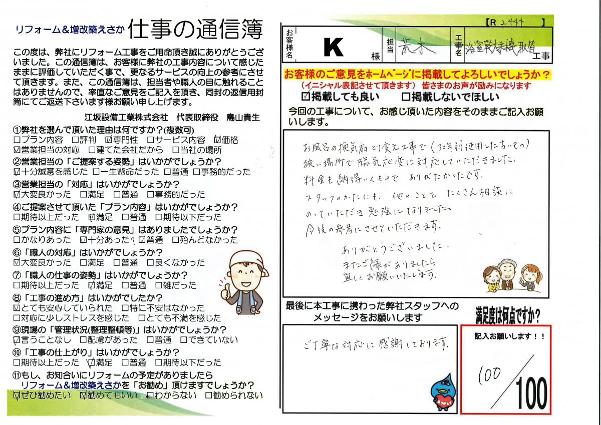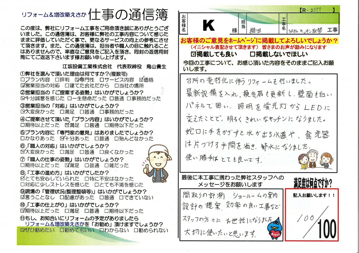 交換、設置に立ち会った主人から、「職人さんたちが汗をかきながら、一生懸命ひとつひとつ丁寧に作業してくださった」と話してくれました。