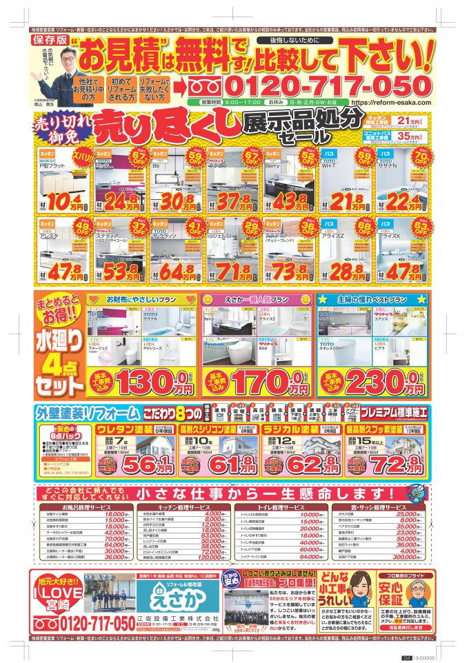 受付時間 / 9:00~17:00 (12:00-13:00 電話休止)施工対応:宮崎市/綾町/国富町