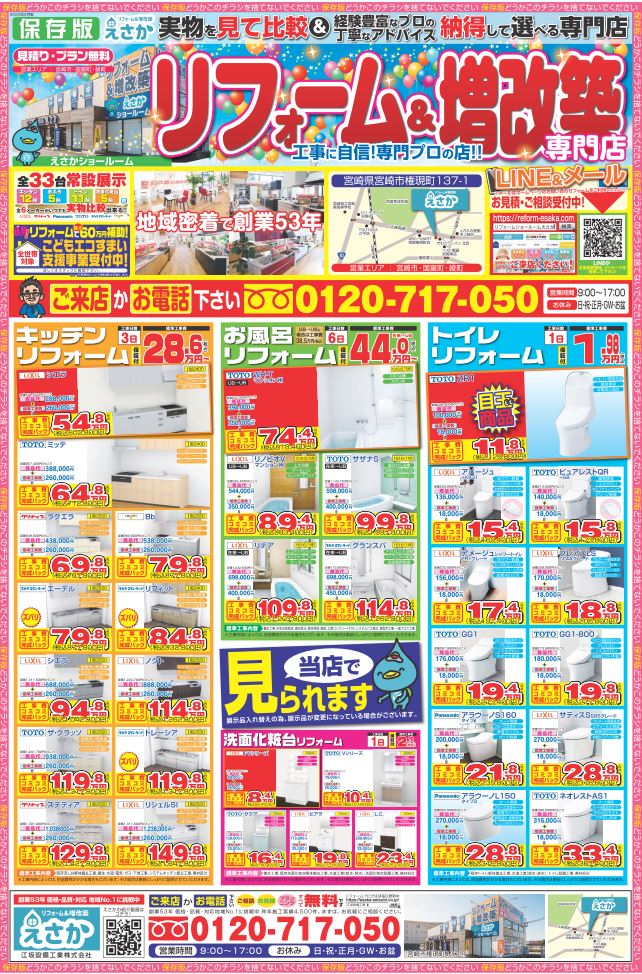 受付時間 / 9:00~17:00 (12:00-13:00 電話休止)施工対応:宮崎市/綾町/国富町