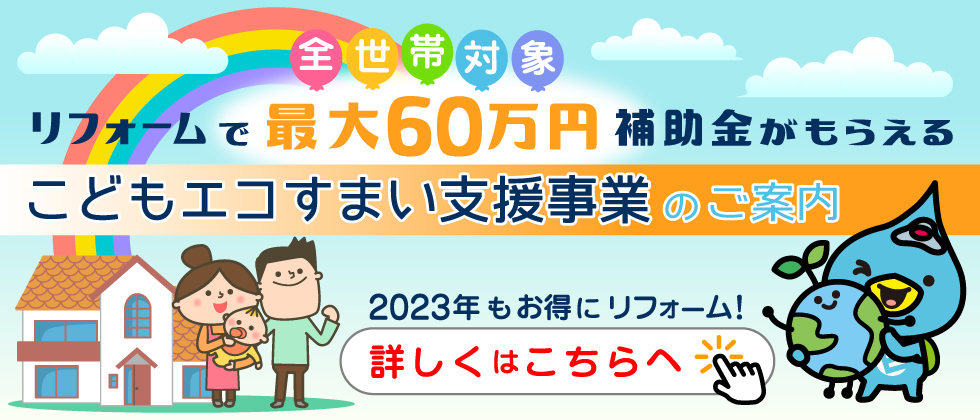 水まわりリフォームは「こどもエコすまい」を活用、窓リフォームは「先進的窓リノベ」を活用し、補助金と省エネ効果をWで得るのが断然お得です。