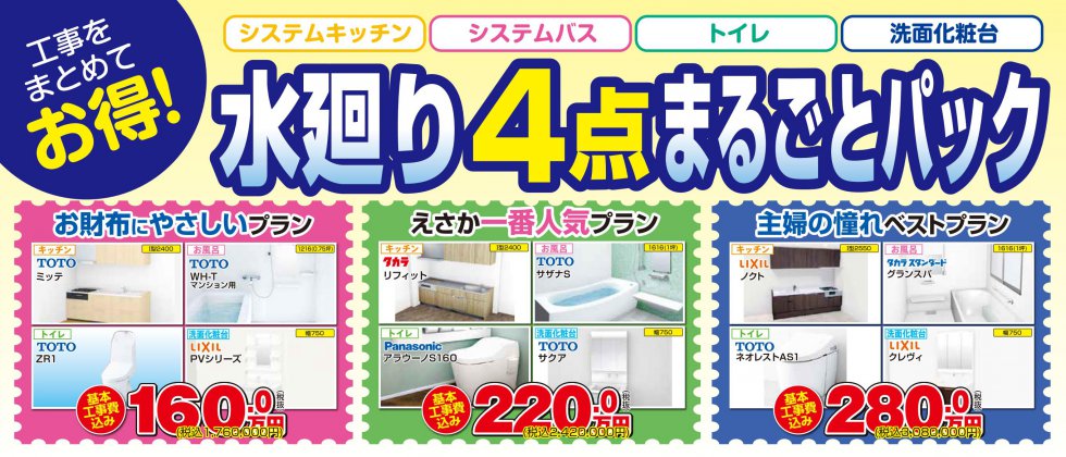 水まわりをまとめてお得!