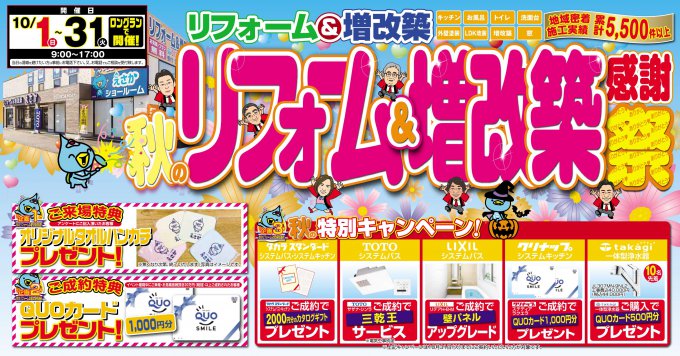 秋の気配を感じるこの季節、新しい生活のスタートに、大切なお住まいのリフォームを考えてはいかがでしょうか?