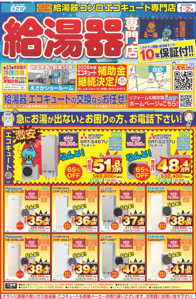 毎日、寄せられる皆様の切実なお悩みを解決するため、えさかでは給湯器交換に特化した専門ブランド「え〜湯(えーゆ)」を立ち上げました!