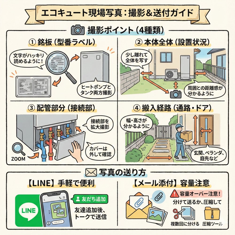 既存の給湯器、エコキュート外観、品番写真を送信