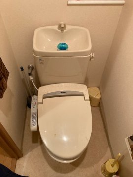 既存品と同様な使い勝手で綺麗に使えるトイレをご希望でしたので、LIXILのフチレス組み合わせ便器と便座のセットでご提案。