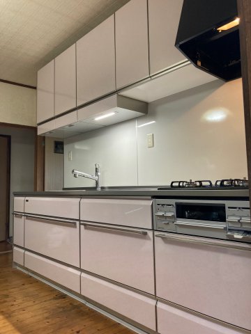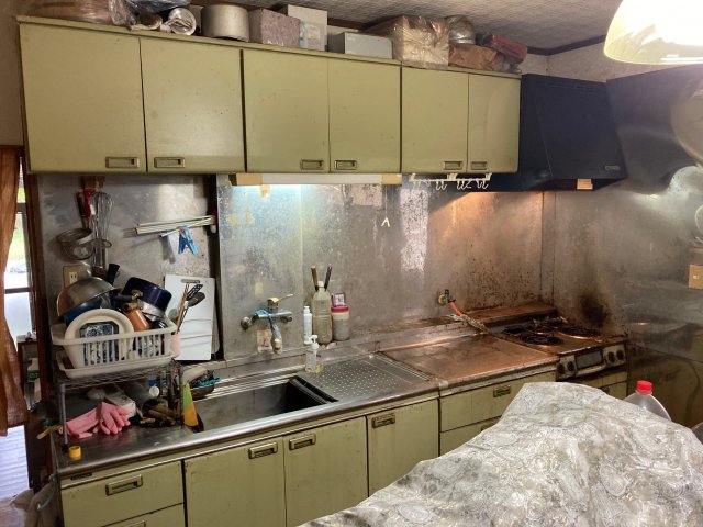 ステンレス板がしっかりと貼られ汚れが付いても掃除がしやすいようなキッチンでしたが、やはり長年使われるとお手入れもしづらくなり、汚れも取れにくくなってきたとの事でした。