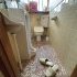 壁のタイルはハツリ、下地処理を行ったあとクロス仕上げ、床のタイルは上からアースタックを塗り、クッションフロアを貼りました。