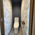 また、お客様のこだわりとして、内装でおトイレを落ち着いた雰囲気にされたいとのことでしたので、正面と天井を無地の濃いネイビーで仕上げました。(サンゲツ SP2589)