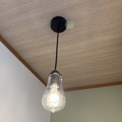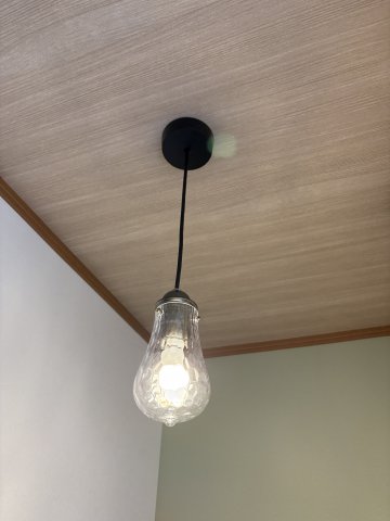 特にこだわったのは、空間のベースとなる内装です。「ナチュラルで上質なカフェのような雰囲気」を演出するため、壁には落ち着いたグリーンのアクセントクロスをセレクト。床はヘリンボーン調、天井は木目調を採用し、素材感の組み合わせを楽しみました。 さらに、一般的な天井照明ではなく、あえてペンダントライトを取り入れることで、空間に立体感と温かみのある陰影を生み出しています。