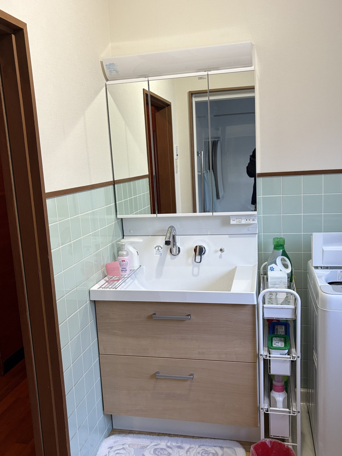 原因と対策をご納得いただいた上で、修繕と徹底した寒さ対策(断熱)を施した浴室プランをご提案。さらに、洗面室は三面鏡と引き出し収納を備えた洗面台へと一新し、埃を気にせずスッキリ片付く空間をご提案させていただきました。