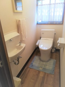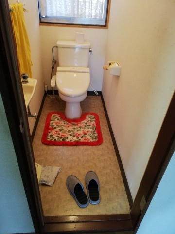 トイレ取替の際に手洗器と紙巻き器の取替、床のきしみ音解消の為根太の部分から工事させて頂きました。