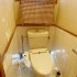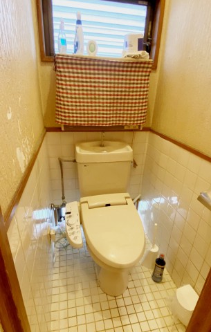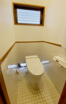 トイレ背面にあった収納も撤去し、コーナーウォールキャビネットにお取り替え、トイレのドアノブを表示錠付に取り替えて、使いやすいトイレ空間になりました。