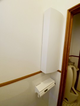 更に、一部剥がれのあった、腰壁タイルや上部のクロスを消臭タイプのパネルと、消臭タイプのクロスを張り替えました。