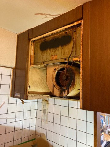 現地調査にお伺いした所、ONにした時の音が大きく、油汚れもありました。