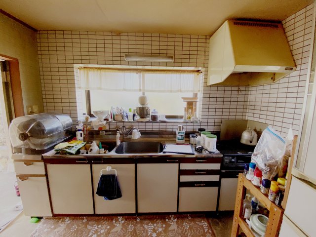 壁内で水漏れがあり、壁や床が傷んだ状態のキッチンでした。