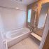 アクセントパネルをライトウッドにし、明るく落ち着いた雰囲気のお風呂になりました。