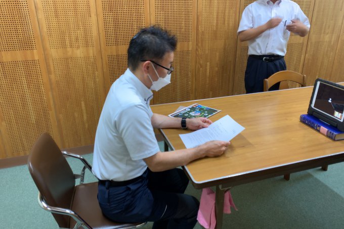 本日、9/9(金)において、赤江小学校においてオンライン贈呈式を執り行いました。