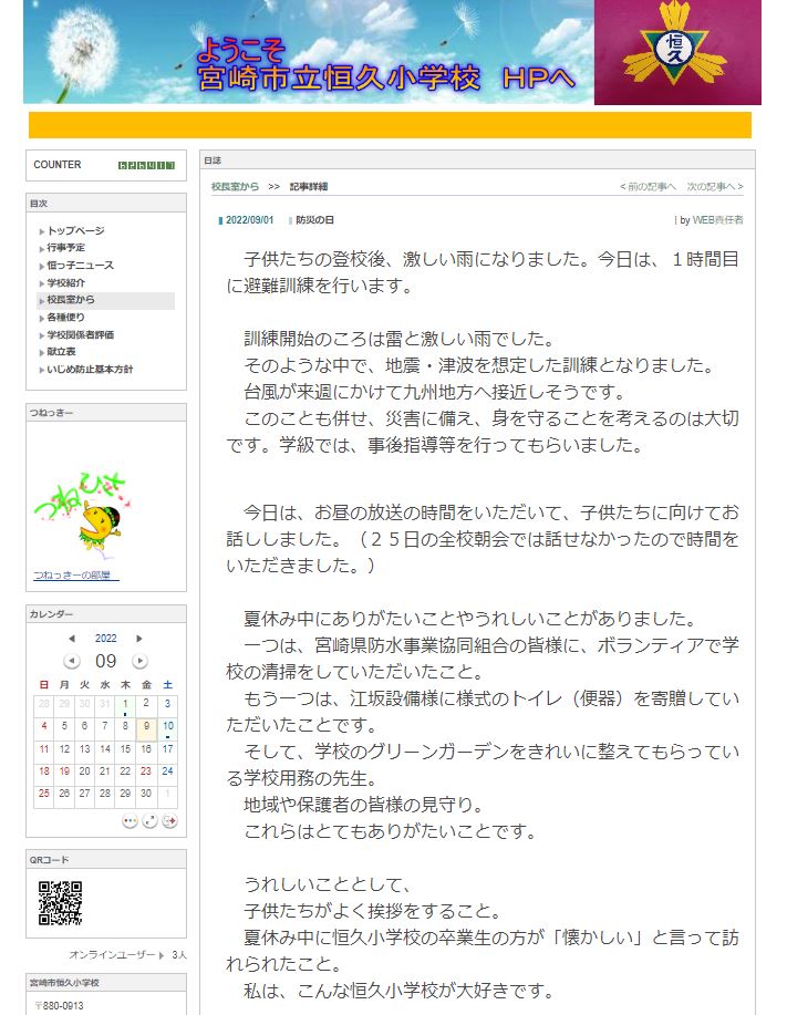 夏休みを利用して、宮崎市立恒久小学校、赤江小学校に洋式トイレを寄贈させていただきました。