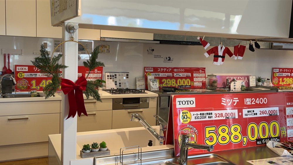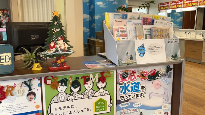 リフォームのヒントがいっぱい クリスマスの装飾を楽しみながら、リフォームのアイデアも得られるのが当店ショールームの特徴です。