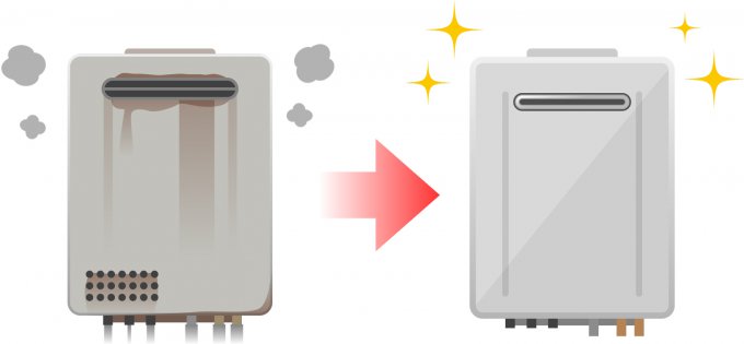 【危険度・高】の症状(ガス臭、排気不良、本体の水漏れ)がある。