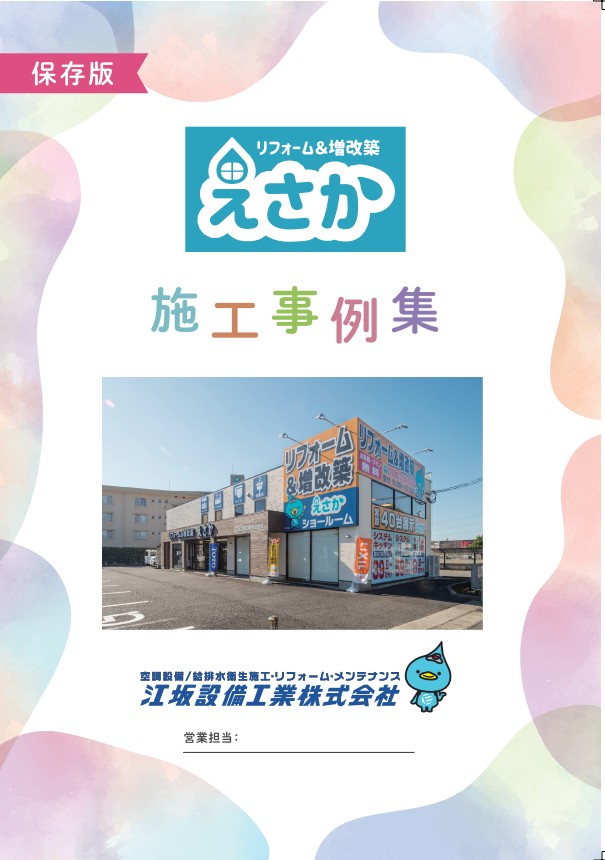 このたび、私たちえさかの仕事ぶりと、お客様の暮らしを快適にするリフォームのヒントをギュッと詰め込んだ、オリジナルの「施工事例集」小冊子が完成いたしました!