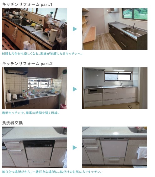 私たちは、地元宮崎市に根ざし、キッチンやお風呂、トイレといった水まわりのリフォームはもちろん、内装・外装工事、そして大規模な増改築(マンションリノベーション)まで、お住まいに関するあらゆる工事を手がけております。