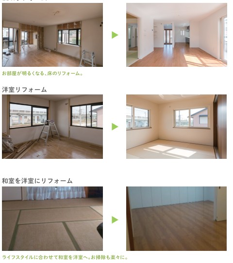 間取り・用途変更: 「畳のお手入れが大変…」そんな和室を、お掃除が楽でモダンな印象の洋室にリフォーム。お客様のセカンドライフに合わせたご提案も得意です。