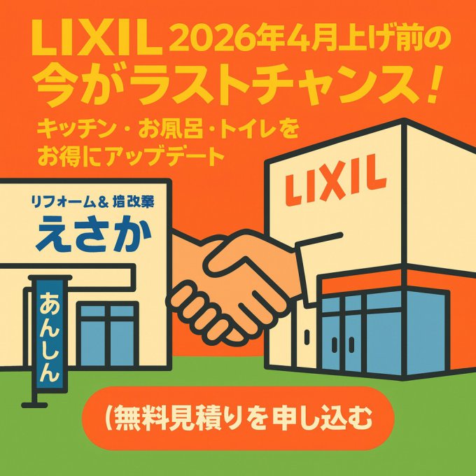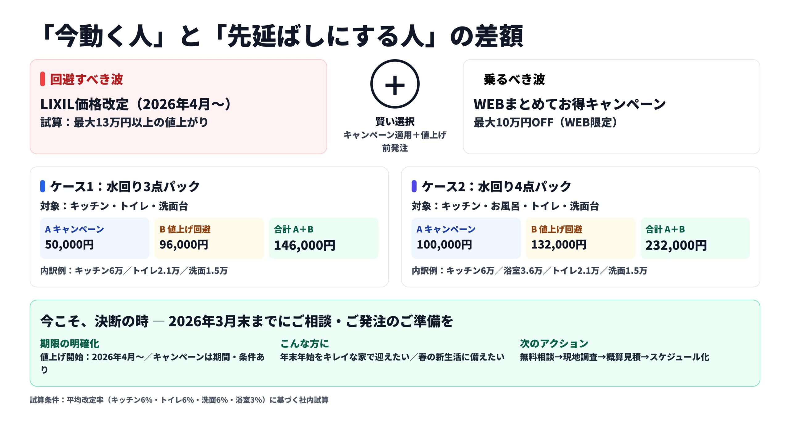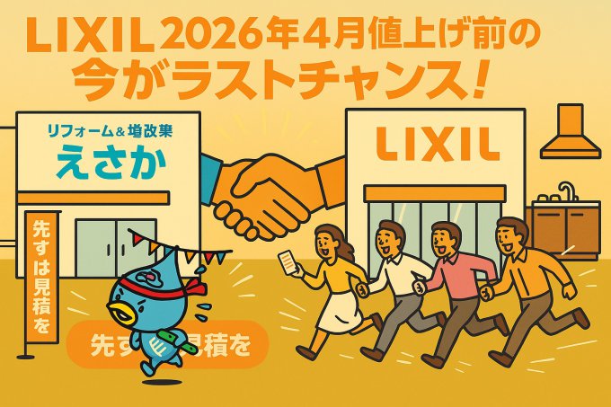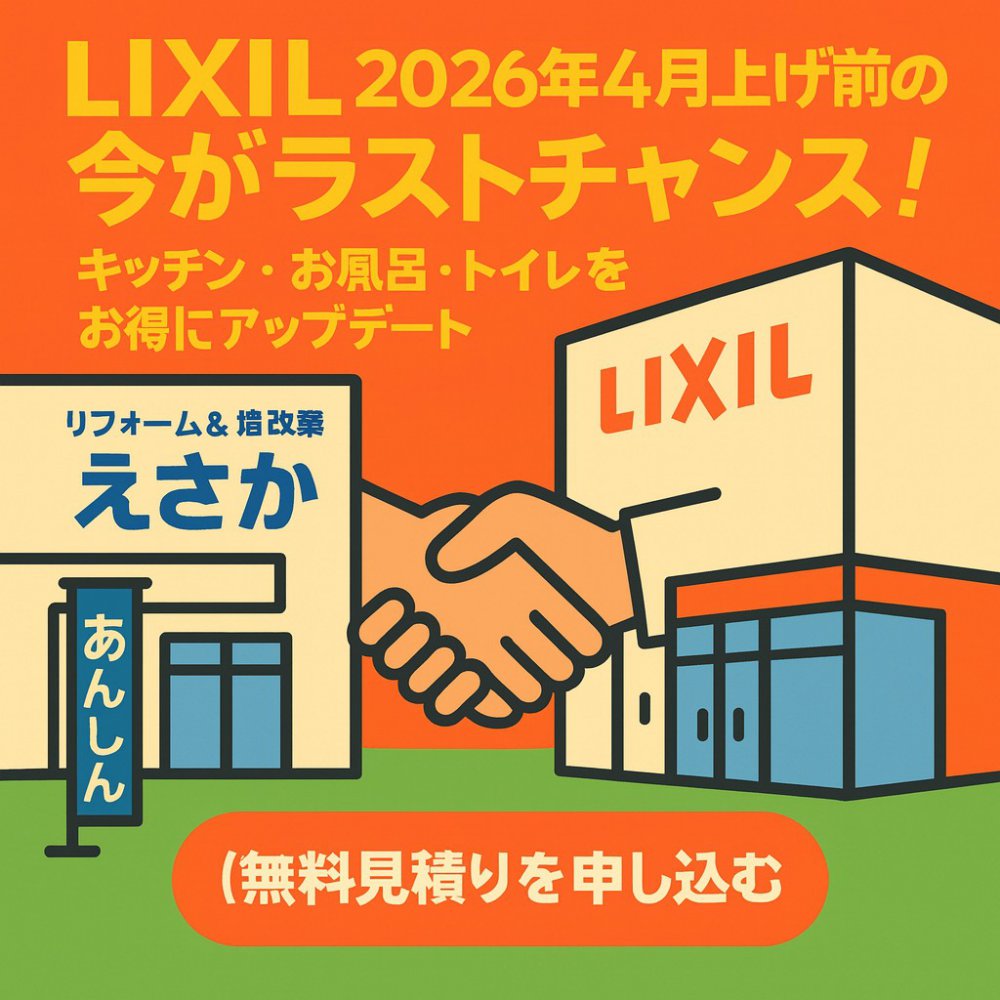 2026年4月からLIXIL製品が値上げ。リフォーム総額で最大13万円以上の値上がりが試算されます。