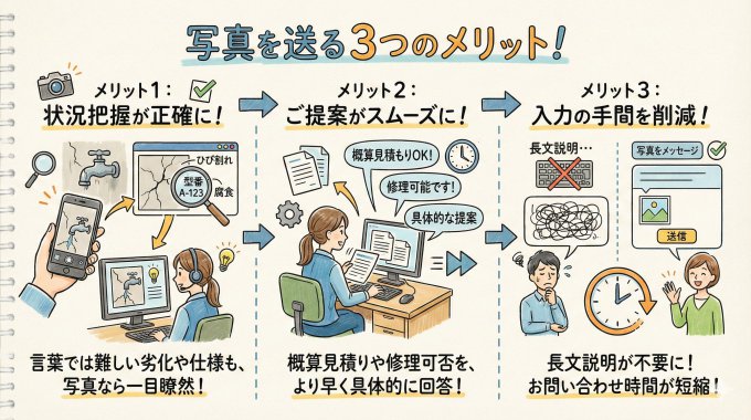 写真を添付していただくことで、以下のようなメリットがあります。