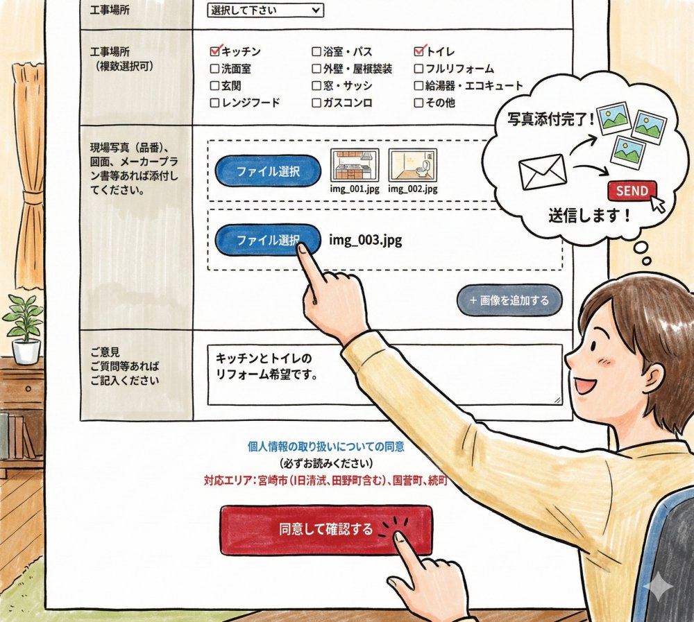 お住まいのリフォームや修理をご検討いただく際、お問い合わせフォームを入力しながら、こんな風に悩んだ経験はありませんか?