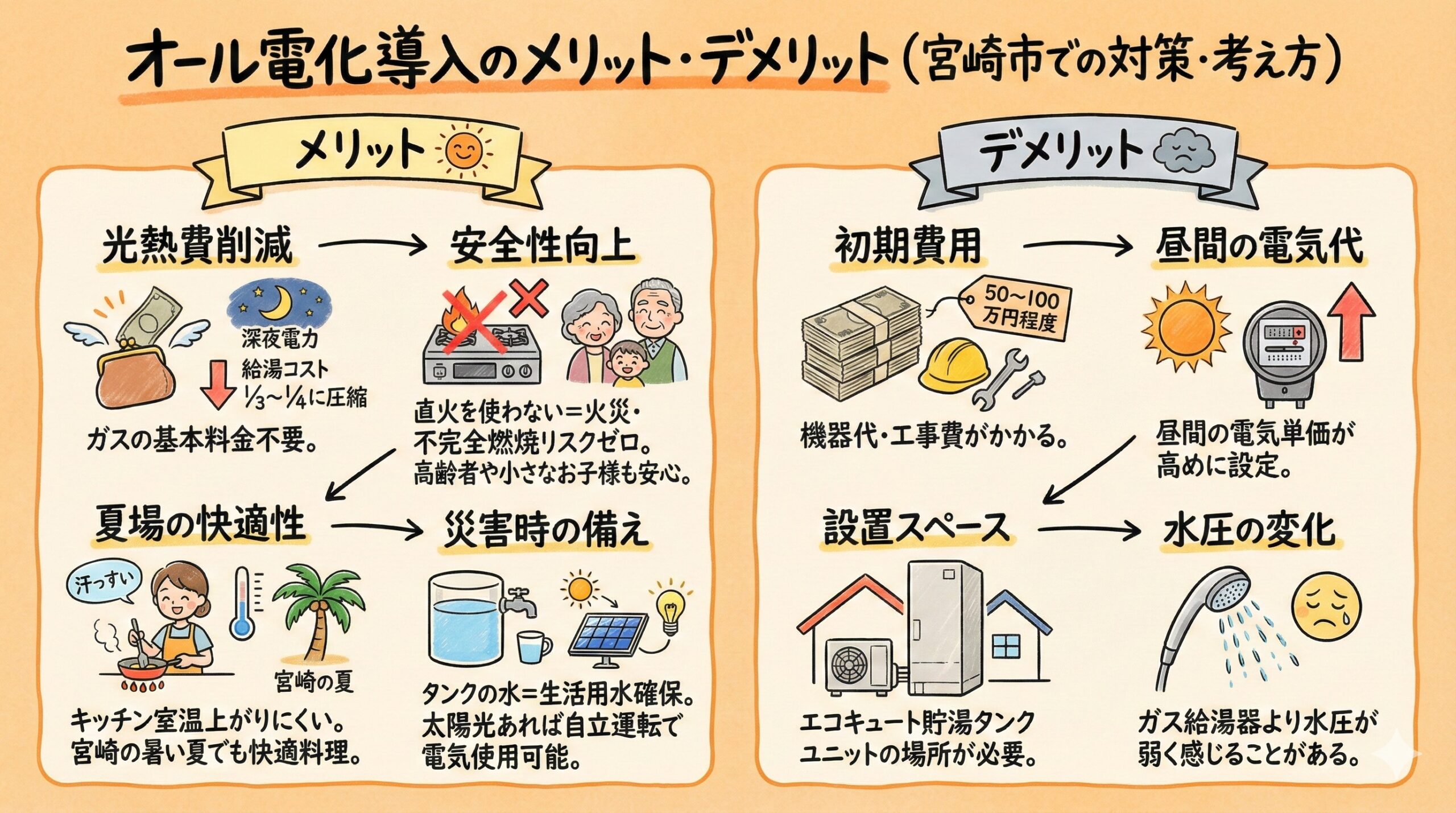 宮崎市でのオール電化リフォームは、単なる設備の交換だけでなく、これからの生活の「安全性」と「経済性」を大きく向上させる、未来への投資です。