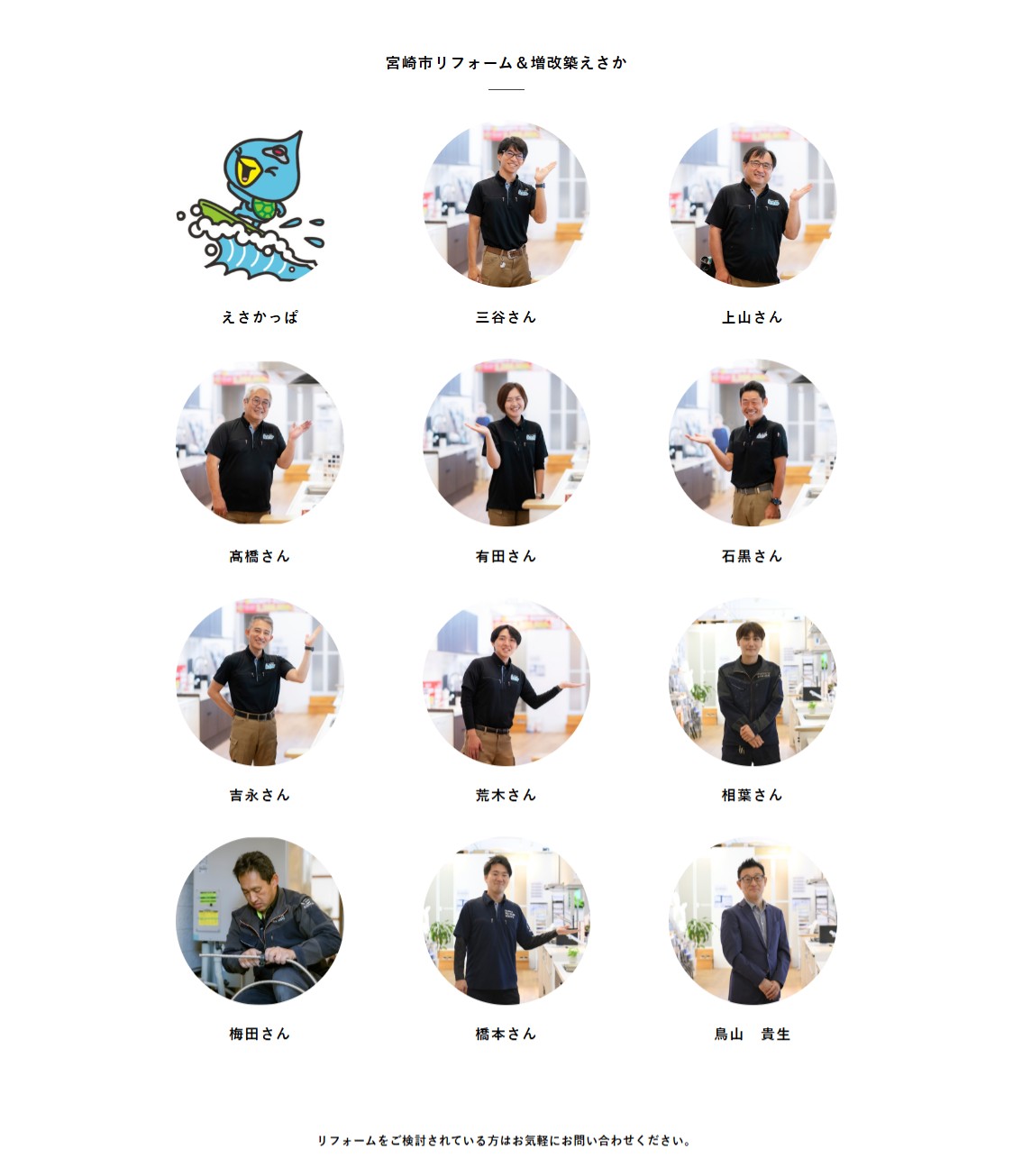 ・知りたい情報がすぐ見つかるシンプルな構成 「施工事例」「スタッフ紹介」「リフォームプラン」といった、リフォームをご検討中のお客様が特に重視される項目を、よりシンプルで分かりやすい構成に改修いたしました。これまでの実績や、私たちの人となり、そして具体的なプラン内容が直感的に伝わるページを目指しております。