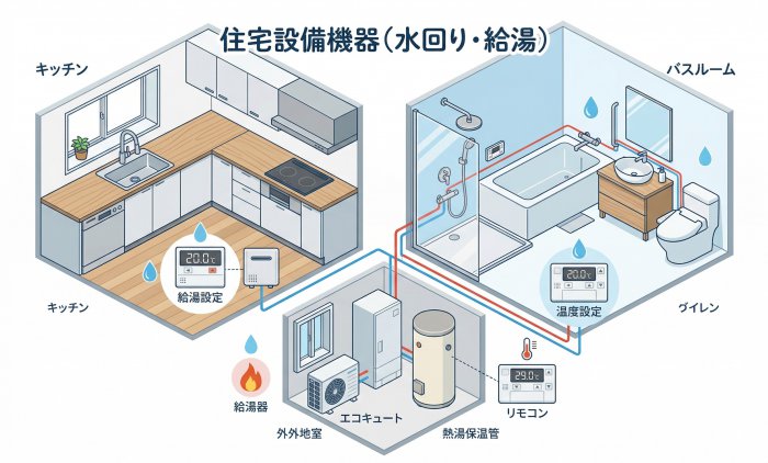 | 住宅設備機器 | トイレ・洗面・浴室・キッチン・給湯・空調 | LIXIL、TOTO、リンナイ、ノーリツ、パナソニック等 | 建産協 統計要覧 |