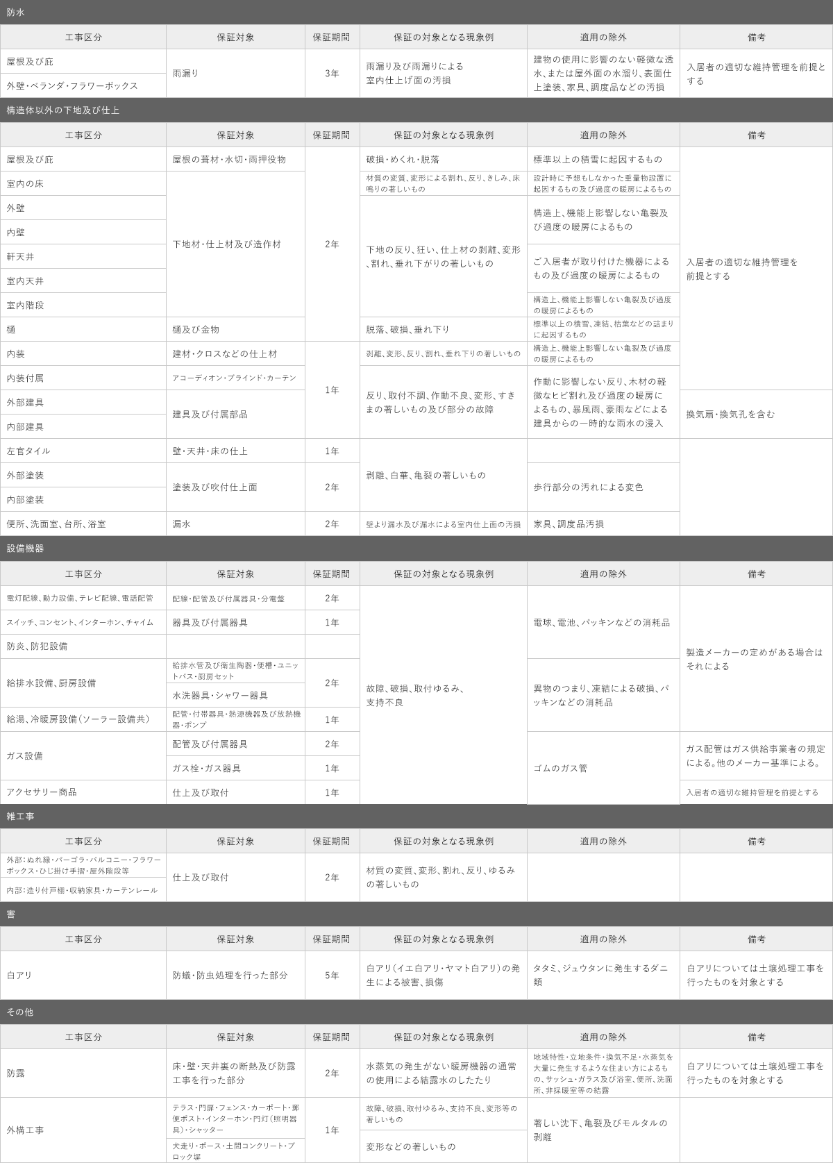 保証期間経過後、請負者に申し出があったもの、又は保証該当事項の発生後すみやかに申し出がなかったもの。
