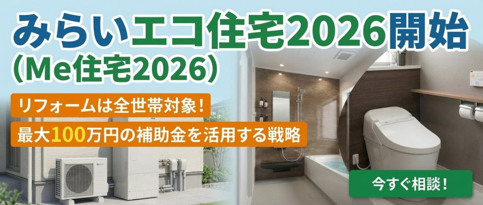 掲載期間1/5/(月)~3/31/(火)\リフォーム&増改築えさか/ 1-3月限定 チラシ/イベント情報 住宅省エネキャンペーン2026始動! 4月値上げ!LIXIL商品は今のご注文がお得! \お得な情報をチェック/ .web-check-button { background-color: red; color: white; font-size: 1.5em; font-weight: bold; padding: 15px 25px; text-align: center; text-decoration: none; display: inline-block; border-radius: 5px; width: 100%; max-width: 300px; box-shadow: 0 4px 6px rgba(0, 0, 0, 0.1); } WEBチラシをCHECK! 日頃よりえさかショールームをご愛顧いただき、心から感謝申し上げます。 リフォーム&増改築えさかでは、寒さを乗り越え、暖かな春の訪れを迎えるための特別プランをご用意しております。新しい年と共に、お家のリフォームを検討されてはいかがでしょうか。↙CLICK 冬におすすめのリフォームプラン↙CLICK 寒さ対策・省エネ効果抜群の断熱リフォーム 冬の冷え込みを和らげ、省エネ効果もアップ!光熱費を抑えながら快適な空間へ。 家族が集うリビングの模様替え↙CLICK 皆が集い、心温まるリビングづくりをご提案します。 キッチンの機能性アッププラン↙CLICK お料理がもっと楽しく快適に!最新設備で日々の家事がラクラクに。 寒さ対策や省エネ効果を高める断熱リフォーム、家族が集うリビングの模様替え、キッチンの機能性アップなど、春の訪れと共に、皆様の理想の住空間を実現するため、誠心誠意お手伝いさせていただきます。 \ショールームへ行く/ \当日予約もOK/ .banner { text-align: center; font-family: Arial, sans-serif; } .reserve-banner { background-color: #4CAF50; padding: 20px; color: white; border-radius: 10px; margin: 20px 0; } .reserve-banner a { display: inline-block; background-color: #4CAF50; color: white; padding: 20px 40px; text-decoration: none; border-radius: 5px; font-weight: bold; font-size: 28px; } .reserve-banner a:hover { background-color: #45a049; } .contact-banner { background-color: #005bb5; padding: 20px; color: white; border-radius: 10px; } .contact-banner a { color: white; font-size: 28px; text-decoration: none; display: block; padding: 20px 40px; background-color: #005bb5; border-radius: 5px; font-weight: bold; } .contact-banner a:hover { background-color: #004b9a; } 来店予約 【対応エリア:宮崎市・国富町・綾町】 リフォームの疑問や不安、直接プロに相談しませんか? 気軽に相談する \\LINEかんたん問い合わせ// チ売り 休館日カレンダー 【イベント速報!!】 【OB様感謝祭】 2/6(金)~2/8(日) 【春のリフォーム感謝祭】 3/7(土)~3/8(日) 2026年春がリフォームのベストタイミング 補助金:住宅省エネ2026キャンペーン始動! 賢い活用術で最大補助額をゲット! 過去最大級のリフォーム支援策「住宅省エネ2026キャンペーン」が実施されます。 注目は、2025年11月28日以降の着工分も対象となる見込みである点。新年度を待たず、今すぐ計画するのが最もお得です。 特に冬の寒さや光熱費にお悩みなら「内窓」がおすすめ。 断熱効果で冷暖房効率が劇的に向上し、一年中快適な住環境を実現します。 さらに給湯器交換や、セットで行う水回り・バリアフリー改修も対象となる画期的な制度です。 補助額は窓リノベで最大100万円、総額200万円超の活用チャンスも。 過去には早期終了した例もあるため、予算のある今のうちに早めの行動をお勧めします。まずは無料見積もりからご相談ください。 .web-check-button { background-color: red; color: white; font-size: 1.5em; font-weight: bold; padding: 15px 25px; text-align: center; text-decoration: none; display: inline-block; border-radius: 5px; width: 100%; max-width: 300px; box-shadow: 0 4px 6px rgba(0, 0, 0, 0.1); } 補助金について相談する 2026年のリフォームは「窓」から。 家計と健康を守る「先進的窓リノベ」活用術 住宅の熱の出入りの約6~7割は、実は「窓」などの開口部から発生しています。 そのため窓の断熱改修は、夏の暑さや冬の寒さ、結露を劇的に改善し、光熱費削減に最も即効性があります。 2026年事業では、高性能な窓やドアへの交換に1戸最大100万円の補助金が交付されます。 春のリフォームに向け、年明け早めの計画が成功の鍵です。 他補助金との併用で支援額を最大化する提案も可能です。複雑な申請は私たちが代行しますので、ぜひ快適な住まいへの更新をご検討ください。 最大17万円補助!光熱費を賢く抑える 「給湯省エネ2026」始動& 新ブランド「え~湯」誕生のお知らせ 家計消費の3割を占める「給湯」。冬の光熱費対策は今が好機です! ■「給湯省エネ2026事業」始動 高効率給湯器への交換に最大17万円の補助金が支給されます。 エコキュート:最大10万円 エネファーム:最大17万円 (※古い電気温水器の撤去加算を含むと+2万円) 今回の特徴は「昼間沸き上げシフト(DR機能)」の導入。次世代の給湯スタイルで、賢く家計負担を減らしましょう。 ■専門ブランド「え~湯」誕生 本事業に合わせ、新ブランド「え~湯」がデビュー。 給湯器のお悩みや面倒な手続きを丸ごと解決します。 【え~湯の5つの特徴】 ・専門店の安心価格/迅速な緊急対応 ・信頼のW10年保証 ・面倒な申請もお任せ「補助金サポート」 ・リフォーム会社ならではの責任施工 【スケジュール】 ・2026年1月中旬:専門チラ