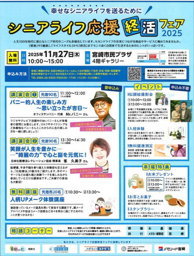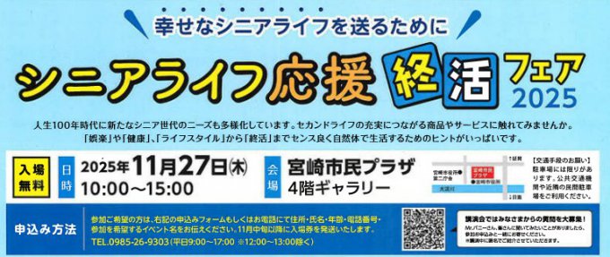 来る2025年11月27日(木)、宮崎市民プラザにて宮崎日日新聞社が主催する「シニアライフ応援&終活フェア2025」が開催されます。