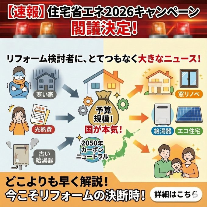 【速報:2026リフォーム補助金】住宅省エネ2026決定!今こそリフォームの好機!