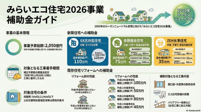 「予算規模」も「対象となる工事の幅広さ」も、国が2050年のカーボンニュートラル実現に向けて、本気で日本の住宅を変えようとしていることが伝わってくる内容になっています。