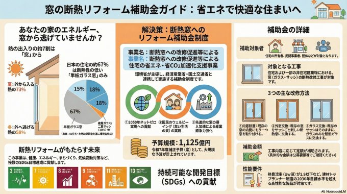 今回の予算の中で、最も注目すべきなのが「先進的窓リノベ2026事業」です。これにはなんと1,125億円もの巨額予算が計上されました。