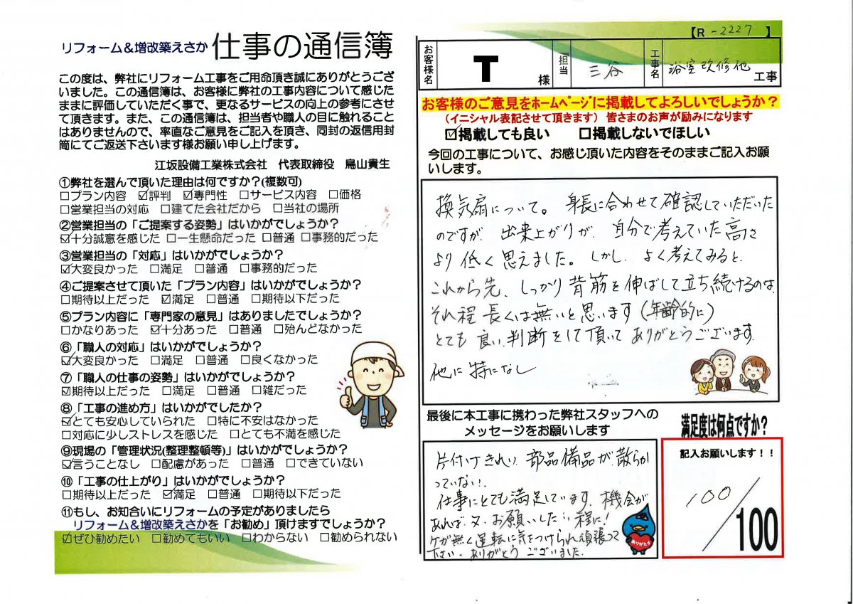 T様、この度は満点のご評価をいただき誠にありがとうございます。