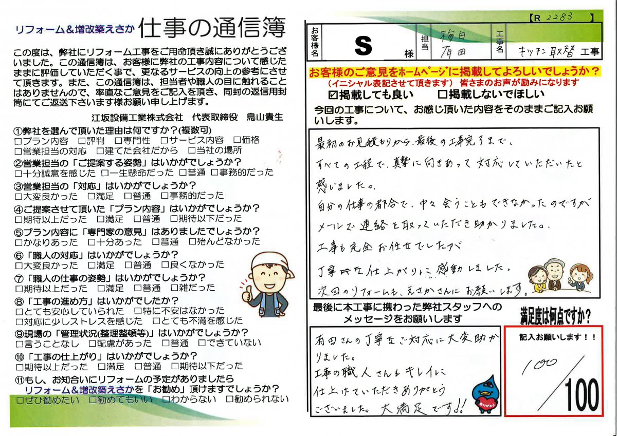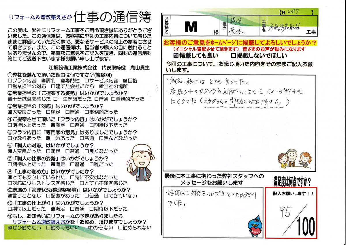M様、この度は工事のご依頼と高評価をいただき誠にありがとうございます。